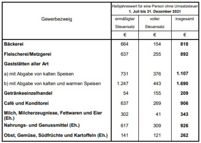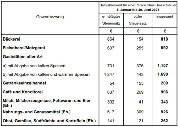 Halbjahreswert fĂĽr eine Person ohne Umsatzsteuer 1.1. bis 30.6.2021